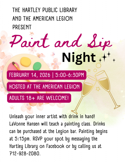 Welcome to the Hartley Public Library! We have a wide variety of electronic and physical resources for all your research and creative needs. Simply click through the tabs above or below to find out information about our catalog, events, and services!